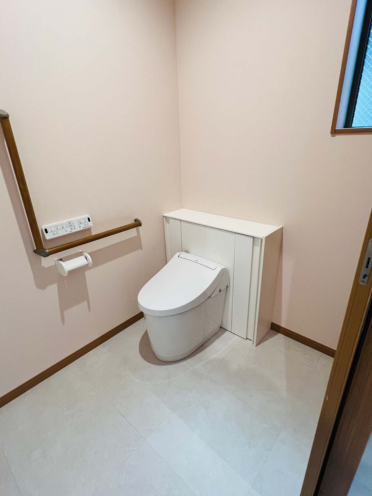 LDKは2階ですが、階段は階段昇降機も設置可能。玄関、バストイレ内には、手すりが付いています。1階のトイレは、車椅子でも入れる広さです。